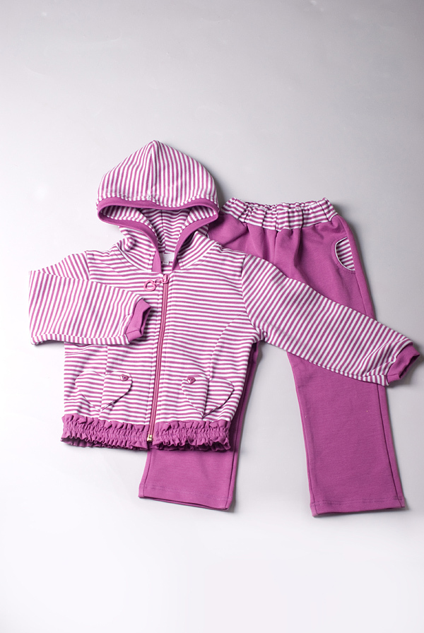 Интерлок, 85% х/б, 15% п/э, полоска + гладкокрашеный; футер с лайкрой, 95%х/б, 5%.